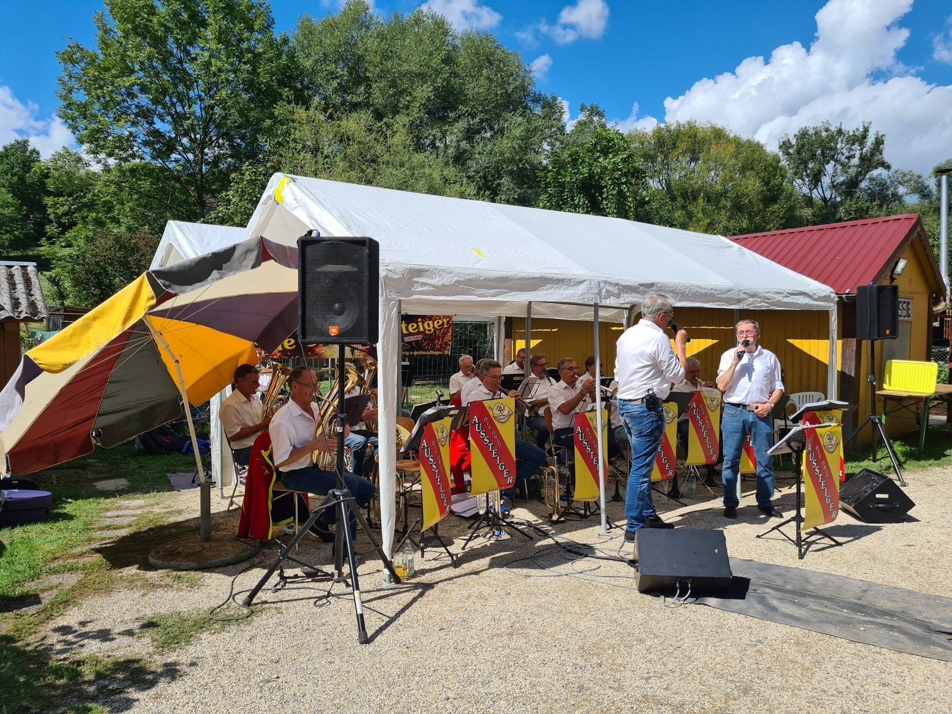 Während sich die Kinder beim Kinderschminken oder auf unserer Hüpfburg vergnügten, sorgte unsere Hausband "Die Originalen Aussteiger" für gute Stimmung bei den Eltern.